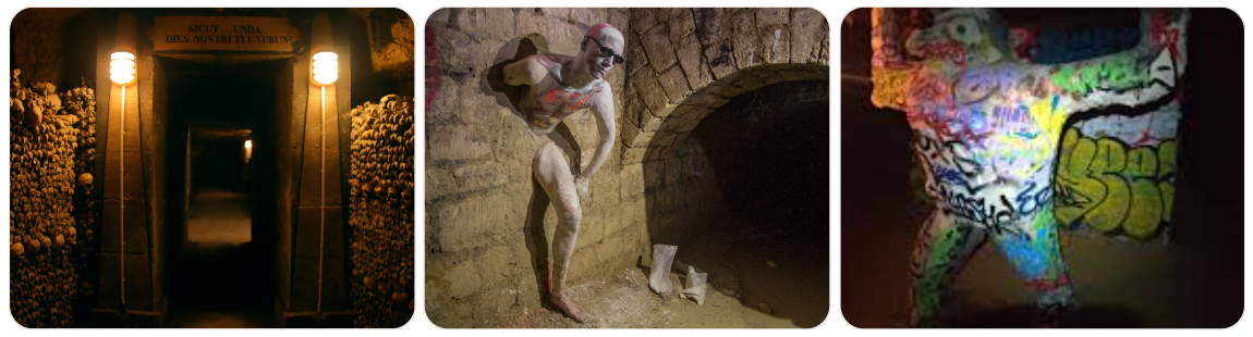 The sculpture, carved by unseen cataphiles—those who dare the catacombs’ forbidden depths—brings Dutilleul’s plight to life. Nestled in the “Salle de Belier,” a chamber adorned with rams and mosaics, it depicts a man half-emerged from soft stone, his form frozen as if the wall consumed him. Remade over years due to damage—some say since 2013, others hint at earlier roots—it exudes a lifelike terror, its eyes seeming to follow in the dim light. The exact creator remains a mystery, with Jean Marais’ name whispered but unconfirmed, adding to its enigma. Carved into the catacombs’ sedimentary rock, it stands as a testament to the subculture’s art, where raves echo and danger lurks—lost explorers and collapsing tunnels a constant threat.